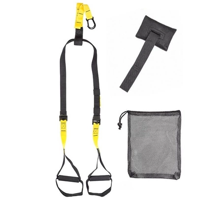 Taśma treningowa to element niezbędny do wykonywania ćwiczeń w podwieszeniu, które są świetne do tego, aby przygotować się o bardziej wymagających treningów np. na drążku bądź linie do wspinania. W naszej ofercie dostępne wytrzymałe, wyposażone w ergonomiczne uchwyty taśmy do treningu podwieszanego, które można przymocować np. do drążka, uchwytu na ścianie lub drabinek gimnastycznych.