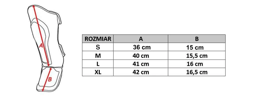 tabela rozmiarow ochraniacze na piszczele DBX Bushido