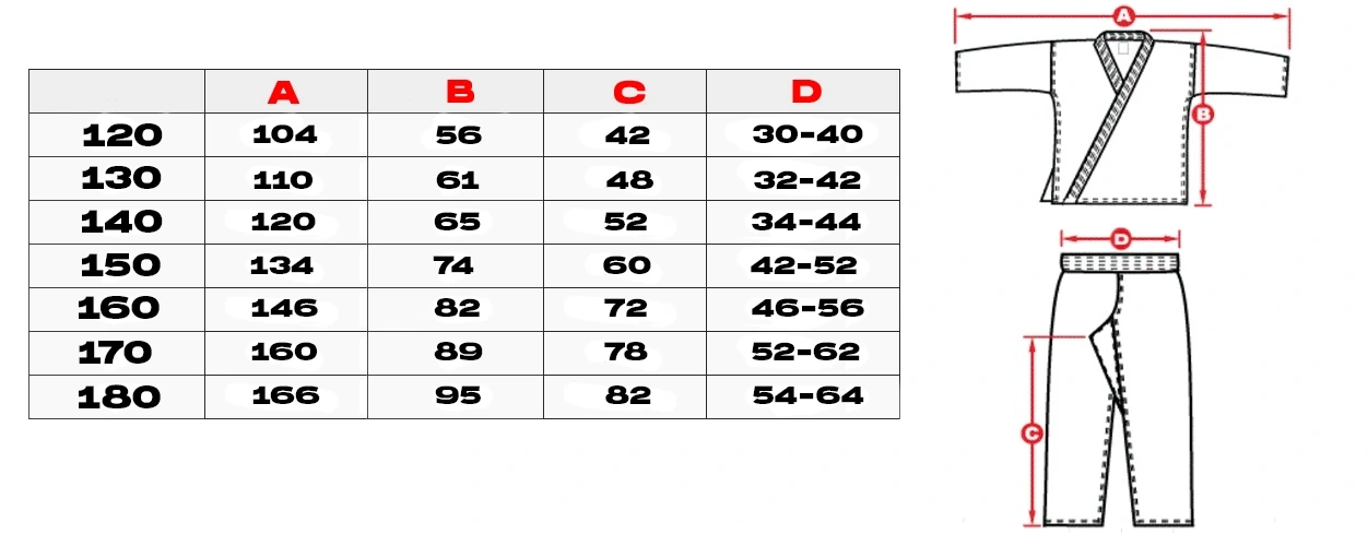 Lekki, a zarazem wytrzymały materiał (mieszanka poliestru i bawełny, ok. 200 g/m²) zapewnia swobodę ruchów i doskonałą wentylację, dzięki czemu Twoje dziecko może w pełni skupić się na treningu. Wygodny krój, system wzmocnień w kroku i na krawędziach oraz podwójny system mocowania w spodniach (gumka + wiązanie) to gwarancja, że strój przetrwa każdy trening i będzie służył przez długi czas.