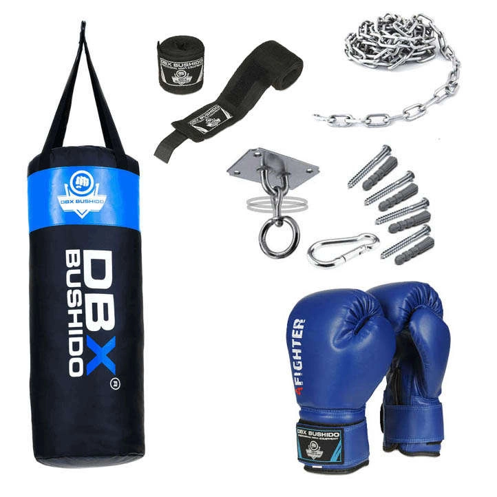 Opinie o 80 cm / 15 kg - Zestaw Bokserski dla Dzieci DBX Junior Niebieski + łańcuch | DBX Bushido