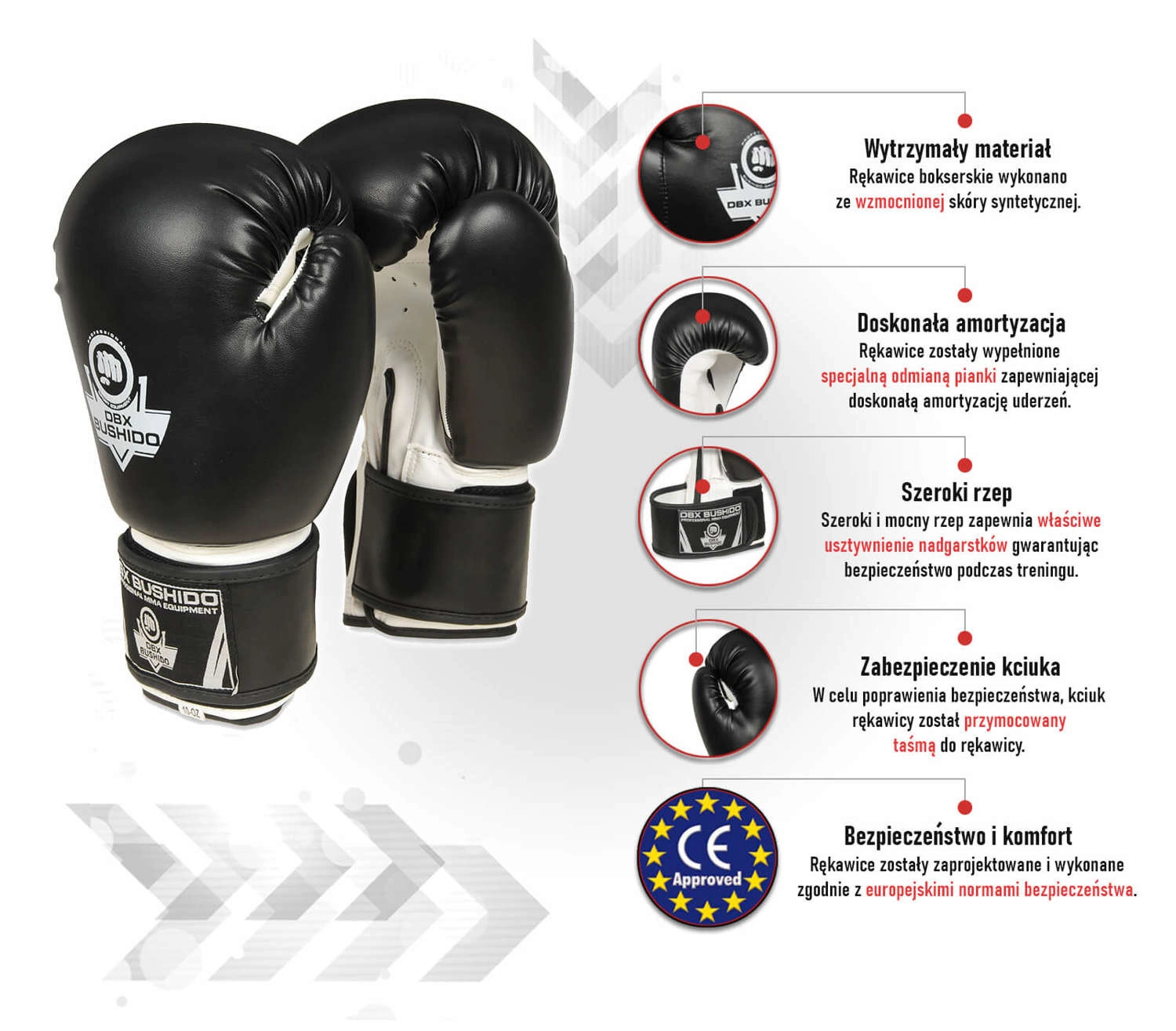 Bezpieczne rękawice bokserskie DBX BUSHIDO Model: Classic White