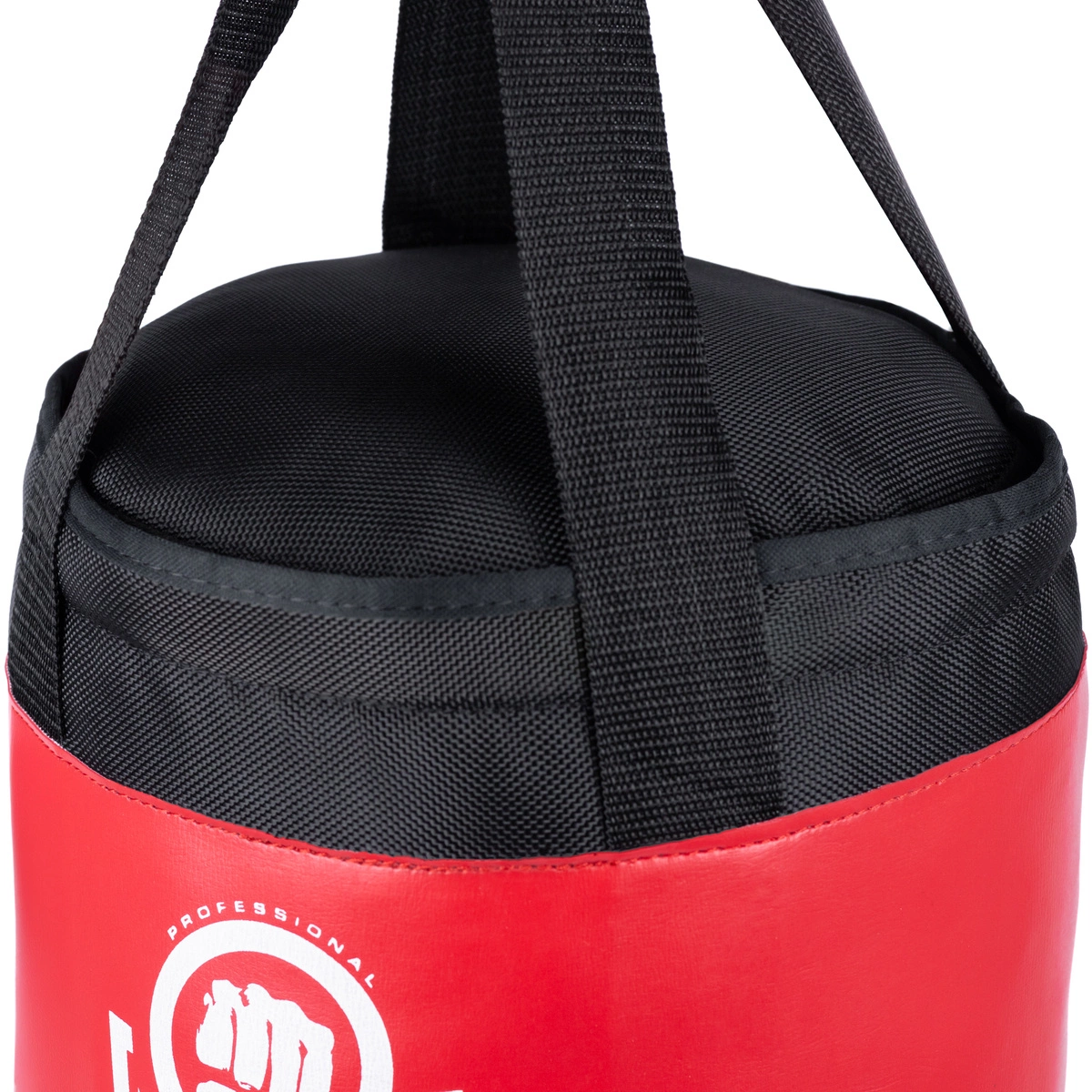 W pełni wypełniony i gotowy do treningu worek bokserski wykonany z grubego i odpornego na rozerwania materiału poliestrowego.