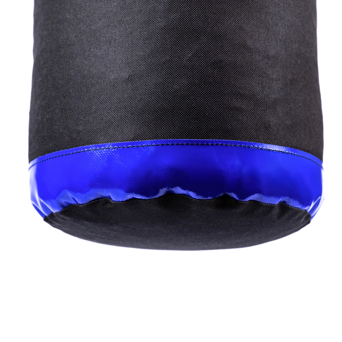W pełni wypełniony i gotowy do treningu worek bokserski wykonany z grubego i odpornego na rozerwania materiału poliestrowego.