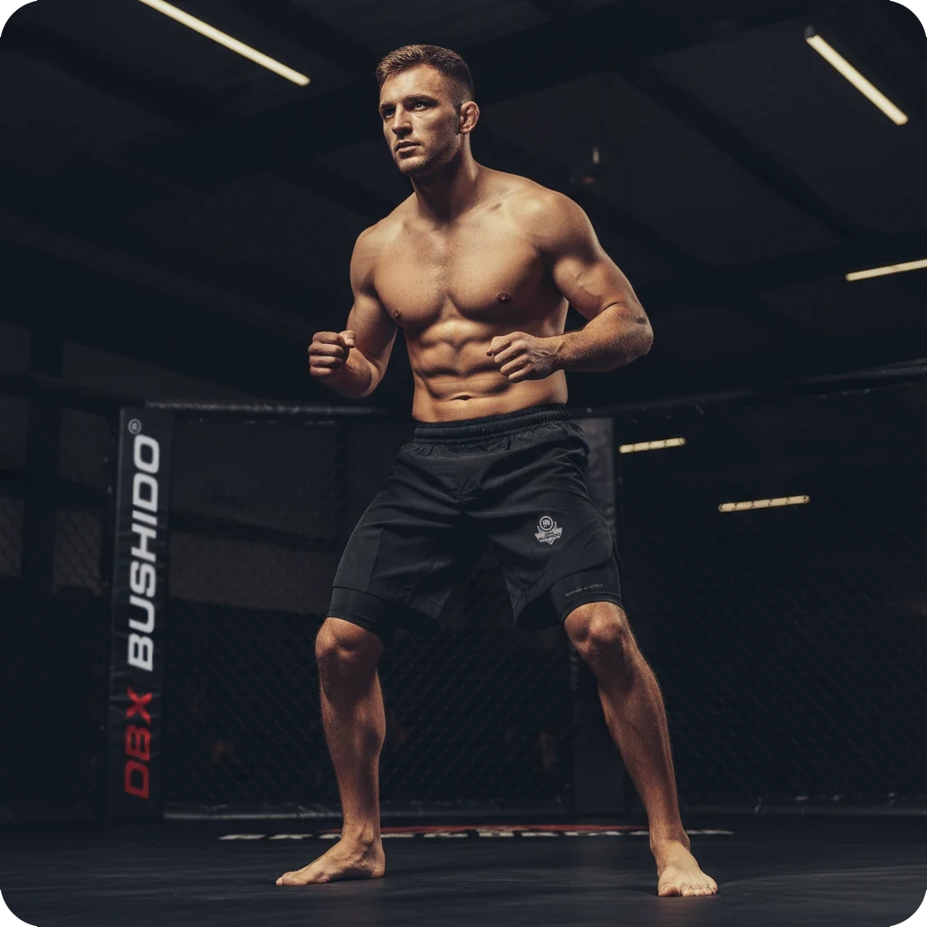 ✅ Pełna swoboda ruchu – elastyczna konstrukcja i rozcięcia boczne gwarantują nieograniczoną mobilność w MMA, BJJ, czy treningu siłowym.