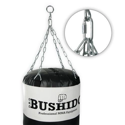 W zestawie z workiem otrzymasz zestaw łańcuchów zakończonych okrętka. Każdy z łańcuchów posiada spawane ogniwa zapewniające wysoką odporność na rozerwania.