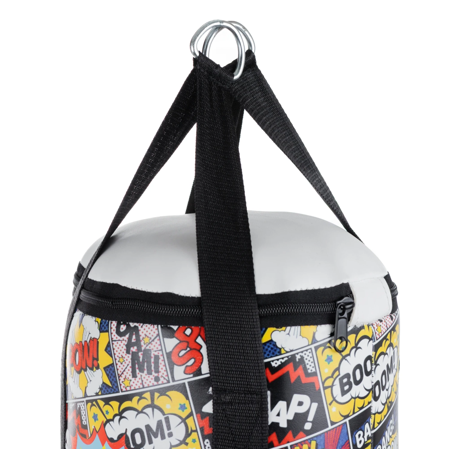 - Worek bokserski o wysokości 65 cm to narzędzie stworzone specjalnie dla dzieci: bezpieczne wypełnienie i grafiki, które sprawiają, że trening staje się zabawą.