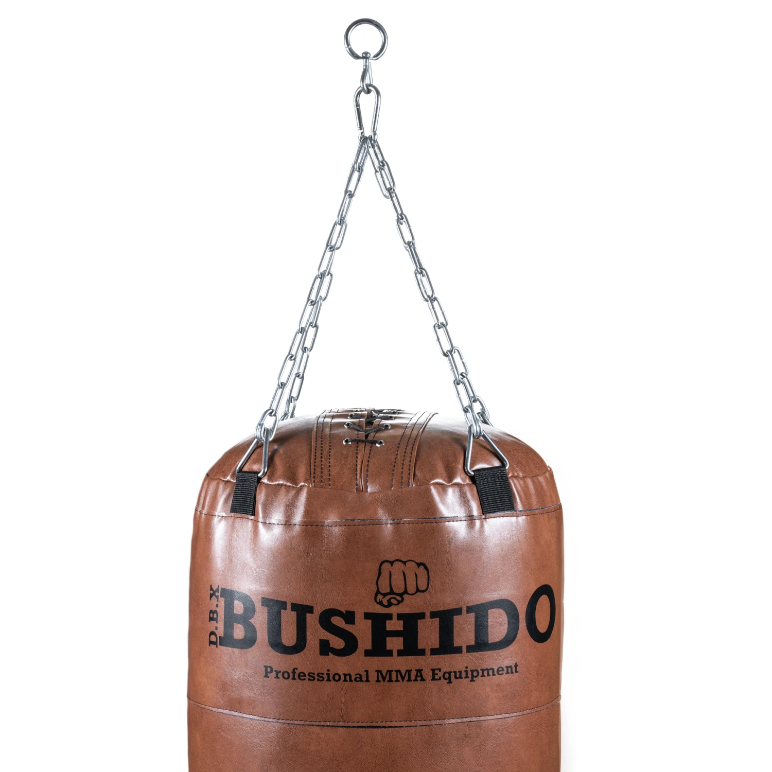 Worek treningowy DBX Spartan wykonano w stylu RETRO z nowoczesnego, specjalistycznego materiału określanego jako skóra wegańska, stworzonego z połączenia wytrzymałego plawilu oraz zaawansowanej powłoki imitującej skórę naturalną.
